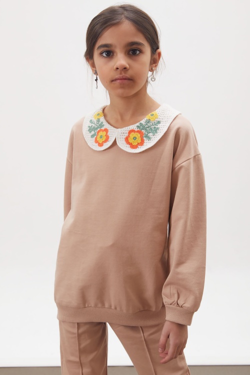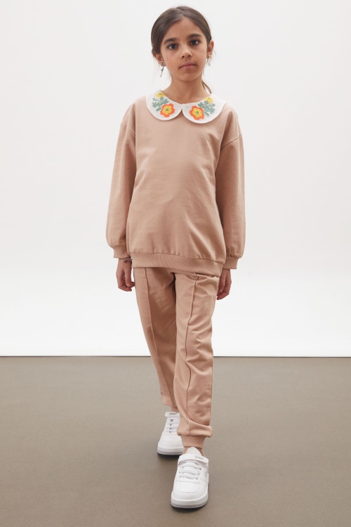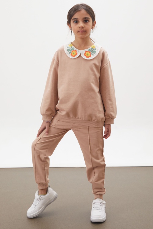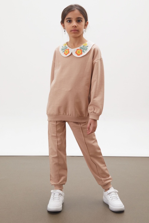 Kumaş İçeriği: %100 Pamuk İçerikli Kumaştır. Türkiye'de Üretilmiştir. Çiçek Nakışlı Bebe Yaka Uzun Kollu Sweatshirt ve Çimalı Tek Alttan Oluşan Kız Çocuk Takım Modeli., Şık Tarzı ile Kız Çocuk Takım. Maksimum 30 Derece Sıcaklıkta Yıkayınız. Ağartıcı Kullanmayınız. Orta Sıcaklıkta Ütüleyiniz. Tamburlu Kurutma Yapmayınız. Kuru Temizleme Önerilmez.