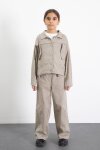 Bej Düğme Detaylı Keten Gömlekli Pantolonlu Kız Çocuk 2li Takım 23518