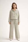 Bej Düğme Detaylı Keten Gömlekli Pantolonlu Kız Çocuk 2li Takım 23518