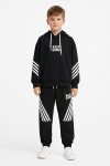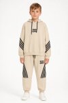 Bej Erkek Çocuk Keep Going Yazılı Şeritli Erkek Çocuk Kapüşonlu Eşofman Takımı 23420