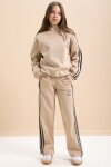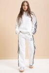 Beyaz 3 İplik Şardonlu Şeritli Dantel Detaylı Kız Çocuk Kapüşonlu Eşofman Takımı 22720