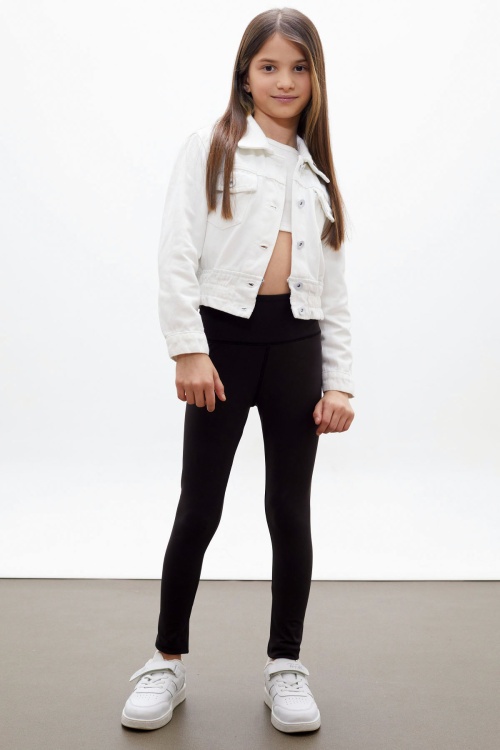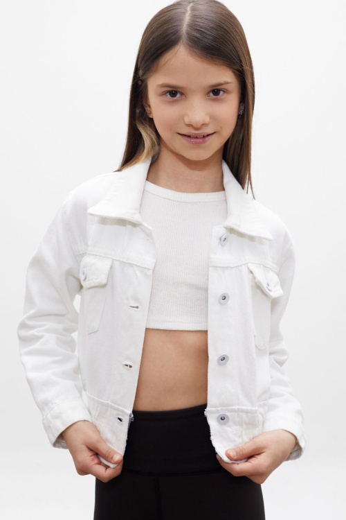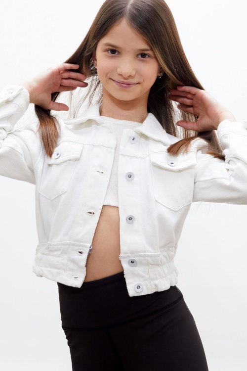 Beyaz Düğmeli Beli Büzgülü Kız Çocuk Jean Ceket 18315