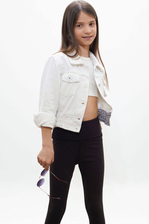 Beyaz Düğmeli Beli Büzgülü Kız Çocuk Jean Ceket