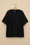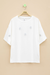 Ekru Gül Nakış Detaylı Kısa Kol Kız Çocuk Oversize Tişört 20809