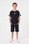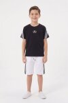 Ekru Logolu Tişörtlü Şerit Detaylı Şortlu Erkek Çocuk Takım 23813