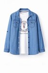 Füme Bisiklet Yaka Tişörtlü Erkek Çocuk Göğüs Cepli Jean Gömlek 20081