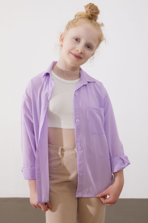 Fuşya Ekose Desenli Cepli Kız Çocuk Oduncu Gömlek 19683