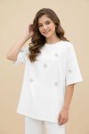Kumaş İçeriği: 98 Pamuk %2 Elastan İçeriklidir. Türkiye'de Üretilmiştir. Gül Nakışlı, Kısa Kollu Oversize Kesim ile Şık Kız Çocuk Tişört Modeli.