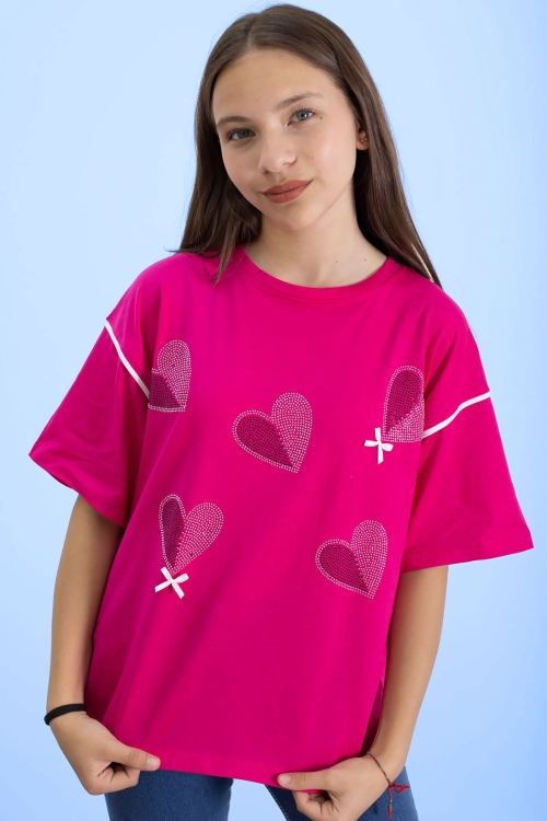 Kumaş İçeriği: 98 Pamuk %2 Elastan İçeriklidir. Türkiye'de Üretilmiştir. Kolları Şerit Detaylı, Payet Baskılı Kısa Kollu Oversize Kesim ile Şık Kız Çocuk Tişört Modeli.