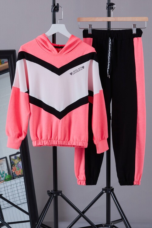 Kumaş İçeriği: %95 Pamuk %5 Elastan İçeriklidir. Türkiye'de Üretilmiştir. Yazı Baskılı Kapüşonlu Sweatshirt ve Tek Alttan Oluşan Kız Çocuk Eşofman Takımı. 40 Derecede Elde ve Makinede Yıkanabilir.