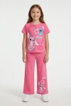 Gül Kurusu Kalpli Karakter Baskılı Geniş Paça Pantolonlu Kız Çocuk 2li Takım 23809