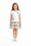 Haki Çiçek İşlemeli Tüllü Etekli Kısa Kol Bluzlu Kız Çocuk 2li Takım 21047