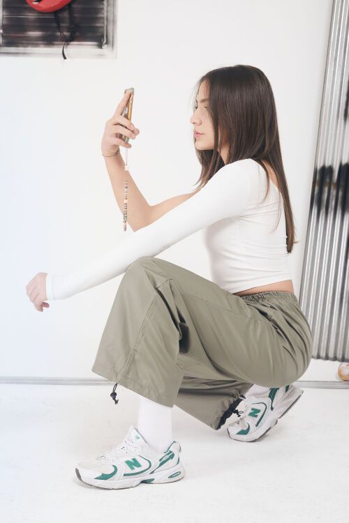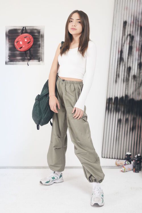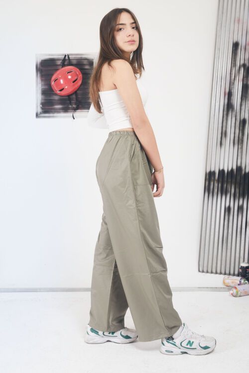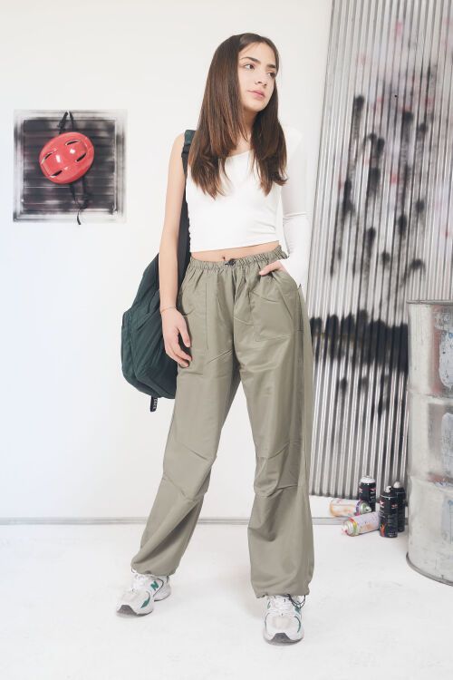 Haki Lastikli Paça Kız Çocuk Paraşüt Pantolon