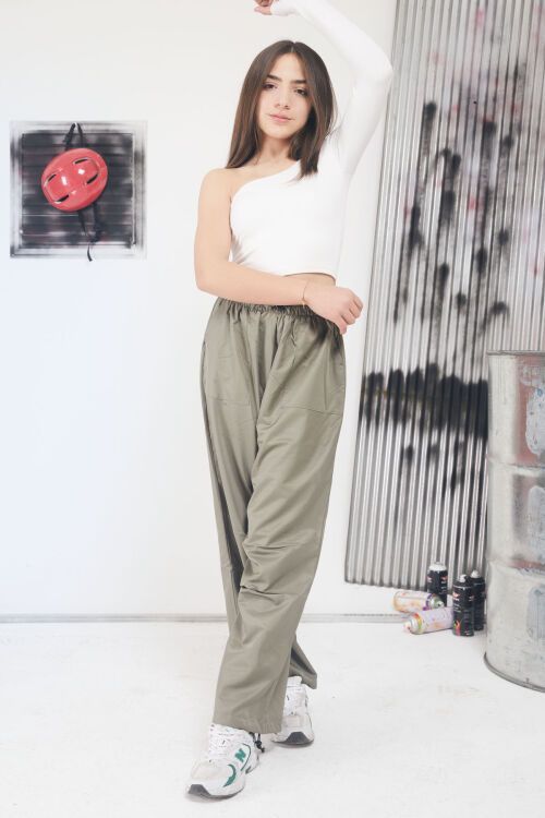 Haki Lastikli Paça Kız Çocuk Paraşüt Pantolon 17560