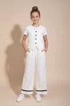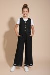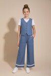 İndigo Düğmeli Keten Yelekli Geniş Paça Pantolonlu Kız Çocuk Takım 23492