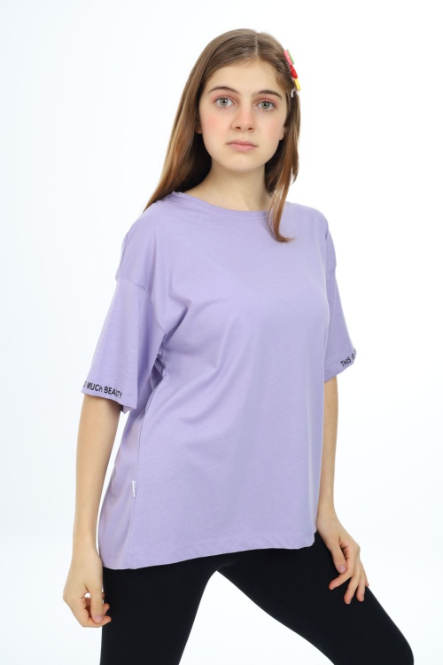 Kumaş İçeriği: 98 Pamuk %2 Elastan İçeriklidir. Türkiye'de Üretilmiştir. Taşlı Dondurma Baskılı, Kısa Kollu Oversize Kesim ile Şık Kız Çocuk Tişört Modeli.