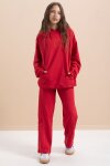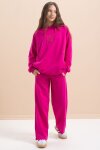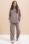 Kahve Yazı Baskılı Kapüşonlu Geniş Paça Kız Çocuk Eşofman Takımı 21430
