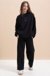 Kumaş İçeriği: %80 Pamuk %20 Elastan İçeriklidir. Kabartma Yazı Baskılı Sweatshirt ve Geniş Paça Tek Alttan Oluşan Kız Çocuk Eşofman Takımı Modeli.