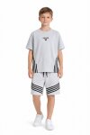 Kahverengi Şerit Desenli Logolu Tişörtlü Erkek Çocuk Şortlu Takım 23782