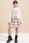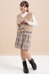 Bej Kız Çocuk Peluş Yelekli Ekose Desenli Şort Etekli 3lü Takım 21527