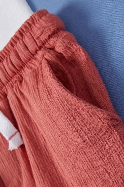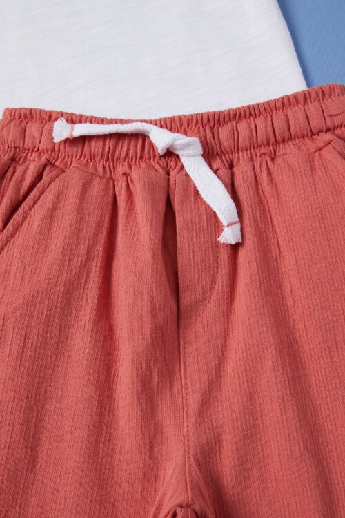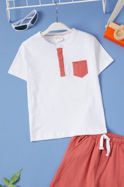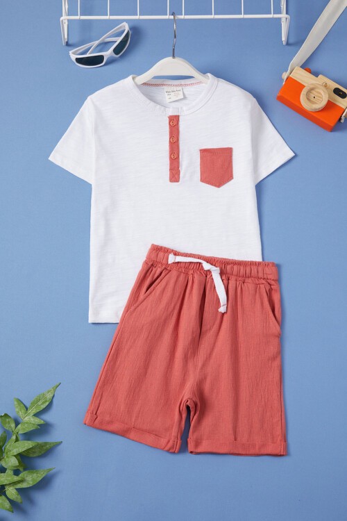 Kumaş İçeriği: %95 Pamuk %5 Elastan İçeriklidir. Türkiye'de Üretilmiştir. Ürünümüzü Maksimum 30 Derecede Yıkayınız. Ağartıcı Kullanmayınız. Orta Sıcaklıkta Ütüleyiniz. Kuru Temizleme Yapılmaz. Tamburlu Kurutma Yapmayınız. Renkli Ürünlerde Colormatik deterjan kullanınız. Sade ve şık Kısa Kollu T-shirt ve Esnek Şortu ile Çocuklarınızın çok seveceği Takım. Düğme Kapamalıdır. Bel Kısmı Esnek ve lastiklidir. Cep ve Düğme Detayları ile hoş bir görünüm sağlar