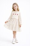 Kırmızı Çiçek Desenli Nakışlı Süveterli Kız Çocuk Müslin Elbise 23578