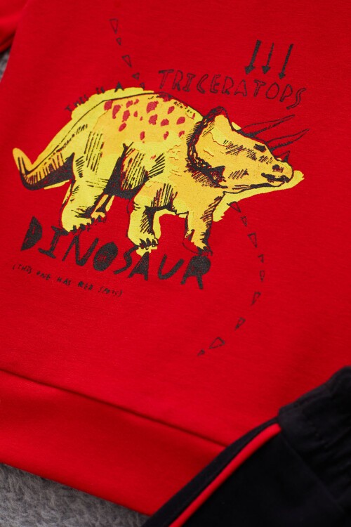 Kırmızı Dinozor Baskılı Cepli Erkek Bebek Eşofman Takımı 17323