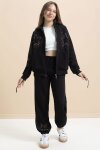 Siyah Kız Çocuk Şardonlu Boncuk İşlemeli 2li Takım 21414