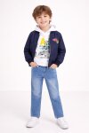 Lacivert Nakışlı Ceketli Jean Pantolonlu Erkek Çocuk Kapşonlu 3lü Takım 23525