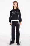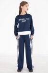 Lacivert Şerit Detaylı Yazılı Geniş Paça Kız Çocuk Takım 22774