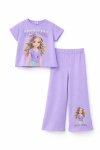 Lila Kız Karakter Baskılı Geniş Paça Pantolonlu 2li Kız Çocuk Takım 23802