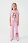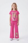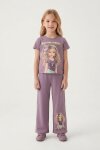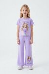 Lila Kız Karakter Baskılı Geniş Paça Pantolonlu 2li Kız Çocuk Takım 23802