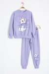 Lila Sevimli Kedi Baskılı Kız Çocuk Eşofman Takımı 22760