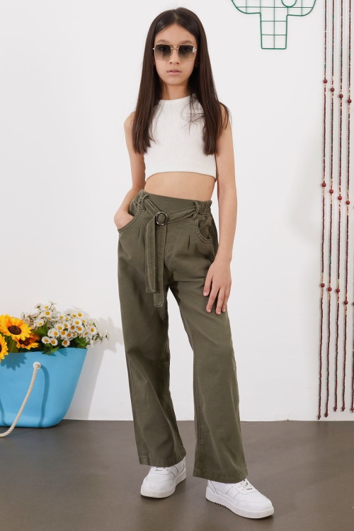 Kumaş İçeriği: %75 Pamuk %23 Polyester %2 Likra İçeriklidir. Şık ve Sade Desenleri ile Hoş Bir Görünüm Sağlayan Geniş Paça Beli Lastikli Kız Çocuk Jean Pantolon Modeli. 2 Adet Ön ve 2 Adet Arka Cebe Sahiptir.