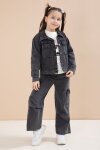 Mavi Jean Ceketli Kargo Cepli Pantolonlu Kız Çocuk Badili 3lü Alt Üst Takım 23614