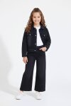 Mavi Kelebek Nakışlı Düğmeli Ceketli Pantolonlu Kız Çocuk Jean Takım 23446