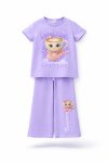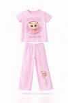 Pembe Ballerin Baskılı Geniş Paça Taytlı Kız Çocuk 2li Takım 23798