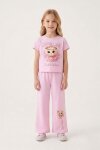 Pembe Ballerin Baskılı Geniş Paça Taytlı Kız Çocuk 2li Takım 23798