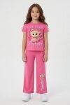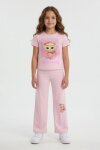 Pembe Ballerin Baskılı Geniş Paça Taytlı Kız Çocuk 2li Takım 23798