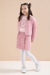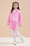 Pembe Gül Detaylı Şort Etekli ve Ceketli Kız Çocuk 3lü Badili Takım 23609