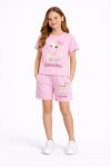 Pudra Balerin Desenli Tişörtlü Kız Çocuk Şortlu 2li Takım 23881