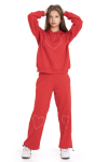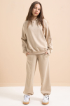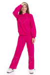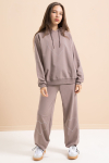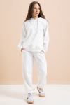 Payet İşlemeli Kalp Desenli Kapüşonlu Sweatshirt ve Beli Paçası Lastikli Tek Alttan Oluşan Kız Çocuk Eşofman Takımı
