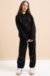 Siyah Kalp Desenli Kapüşonlu Kız Çocuk Eşofman Takımı 21253
