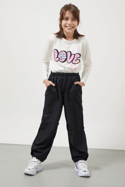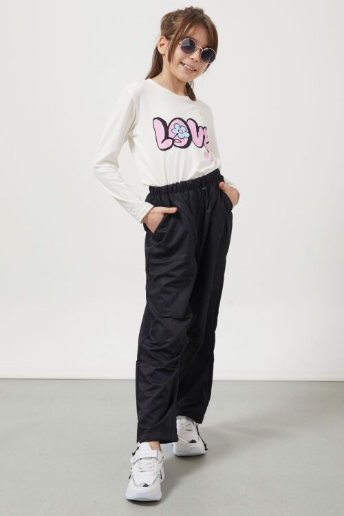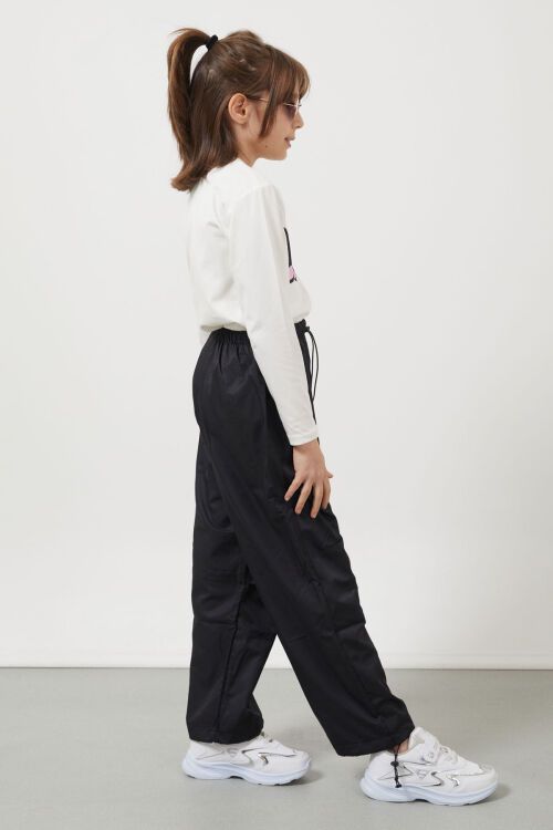 Siyah Lastikli Paça Kız Çocuk Paraşüt Pantolon