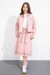 Siyah Nakış Detaylı Jean Ceketli Kuşaklı Etekli Kız Çocuk 3lü Takım 23501