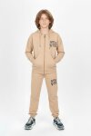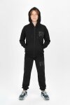 Siyah Yazı Baskılı Kapüşonlu Hırkalı Erkek Çocuk Eşofman Takımı 19226