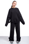 Siyah Yırtmaçlı Paça Fiyonk Detaylı Kız Çocuk 2li Eşofman Takımı 21215