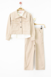 Taba Püsküllü Jean Ceketli ve Pantolonlu Kız Çocuk Badili 3lü Takım 20696