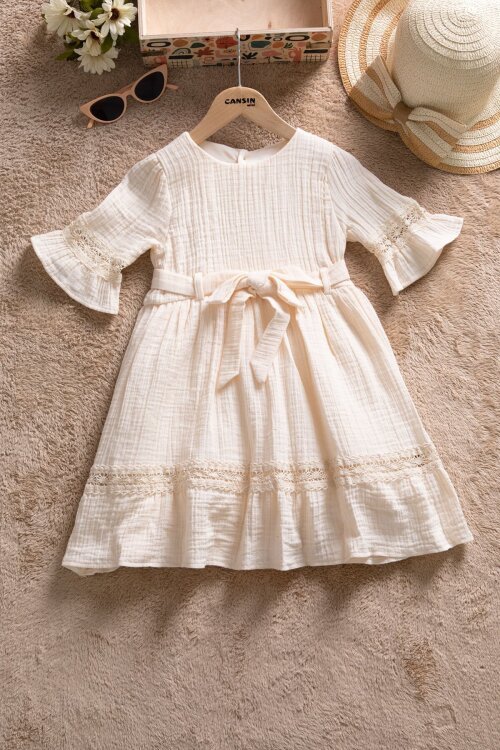 Kumaş İçeriği: %70 Pamuk %30 Polyester İçeriklidir. Türkiye'de Üretilmiştir. Önden Düğme Kapamalı, Şık Ekose Desenli, Bilekleri Lastikli Kız Çocuk Elbise Modeli.