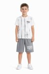 Yeşil Desenli Tişörtlü Erkek Çocuk Yazı Baskılı Şortlu Takım 23786